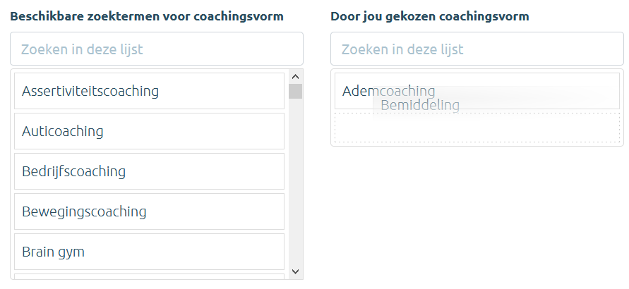 Wanneer de bezoeker zoekt op een bepaalde klacht of osteopathievorm (vb. dry needling), wordt jouw profiel enkel getoond wanneer jij die klacht of osteopathievorm ook geselecteerd hebt in je profiel bij de 'Zoektermen'. Zoekt iemand naar ondersteuning bij schouderpijn, dan verschijn jij enkel in de zoekresultaten indien je de term 'Schouderpijn' hebt geselecteerd.